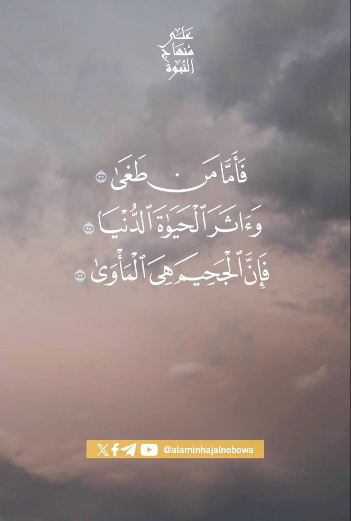 ﴿ فَأَمَّا مَن طَغَىٰ (37) وَآثَرَ الْحَيَاةَ الدُّنْيَا (38) فَإِنَّ الْجَحِيمَ هِيَ الْمَأْوَىٰ ﴾ [ سورة النازعات: 37 - 39]
