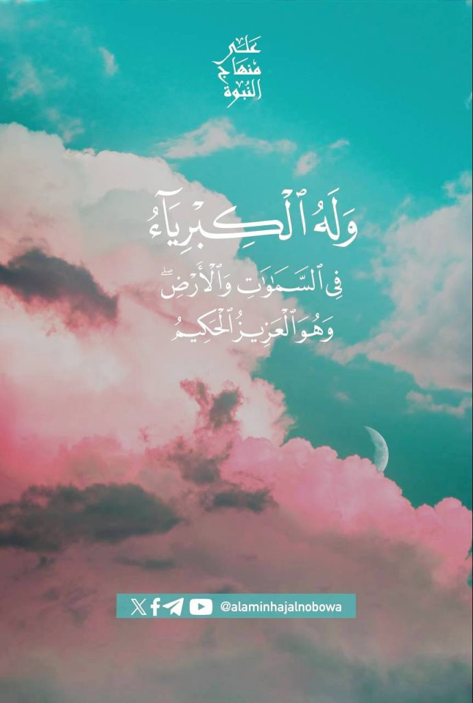 ﴿ وَلَهُ الْكِبْرِيَاءُ فِي السَّمَاوَاتِ وَالْأَرْضِ ۖ وَهُوَ الْعَزِيزُ الْحَكِيمُ﴾ [ سورة الجاثية: 37]