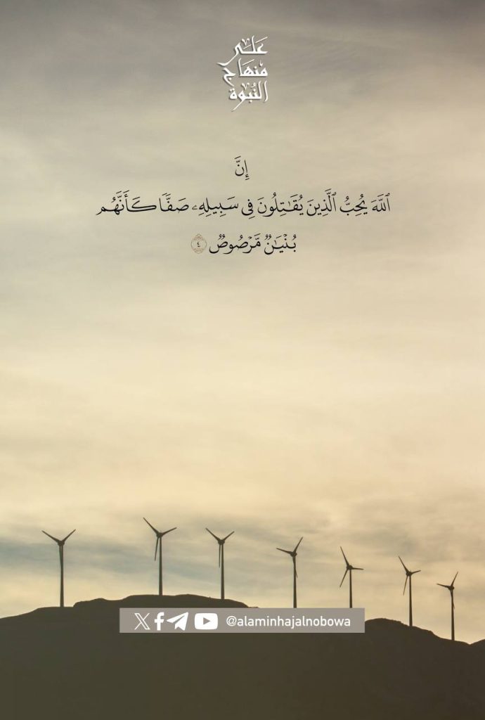 ﴿إِنَّ اللَّهَ يُحِبُّ الَّذِينَ يُقَاتِلُونَ فِي سَبِيلِهِ صَفًّا كَأَنَّهُم بُنْيَانٌ مَّرْصُوصٌ﴾ [الصف4]