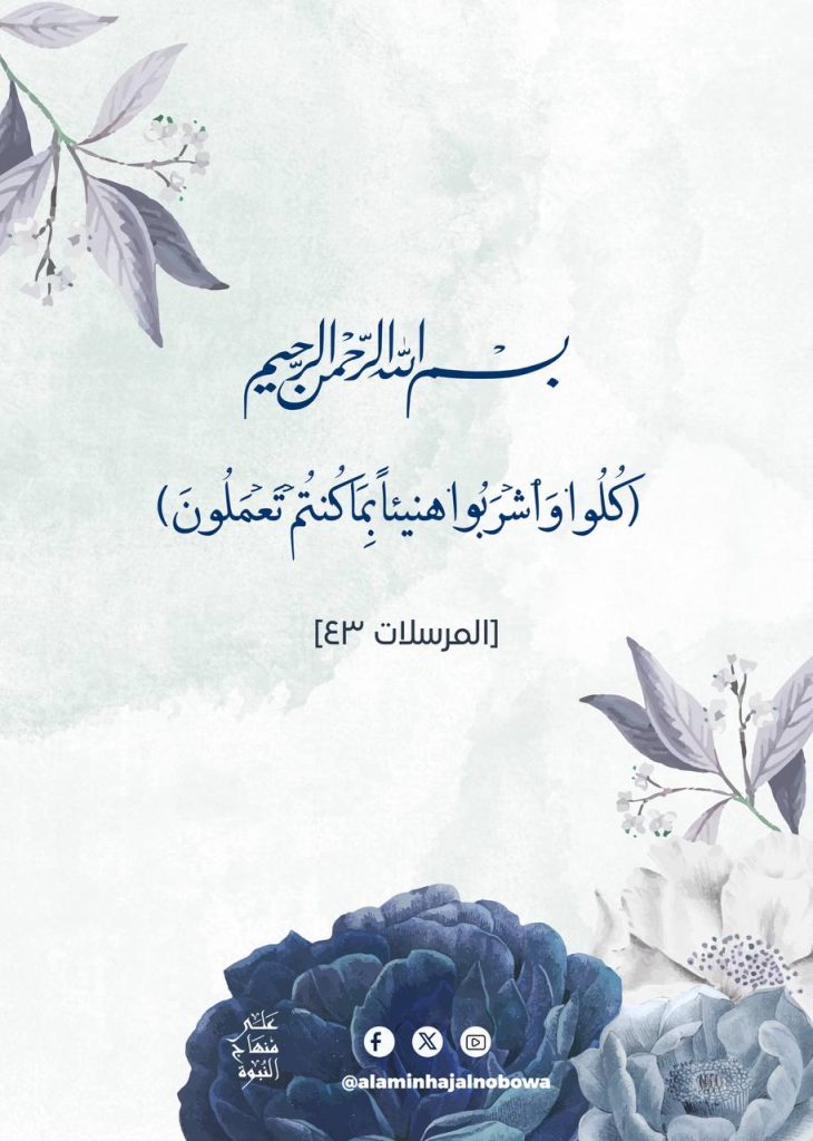 ﴿كُلُوا وَاشْرَبُوا هَنِيئًا بِمَا كُنتُمْ تَعْمَلُونَ﴾ [المرسلات19]
