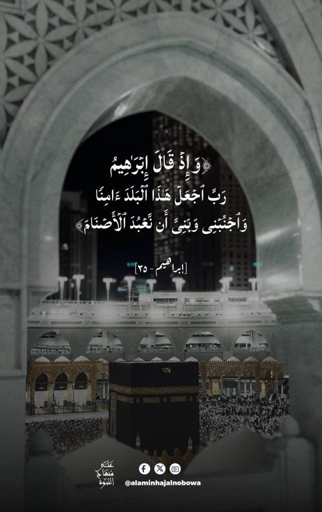 ﴿وَإِذْ قَالَ إِبْرَاهِيمُ رَبِّ اجْعَلْ هَٰذَا الْبَلَدَ آمِنًا وَاجْنُبْنِي وَبَنِيَّ أَن نَّعْبُدَ الْأَصْنَامَ﴾ [إبراهيم 35]