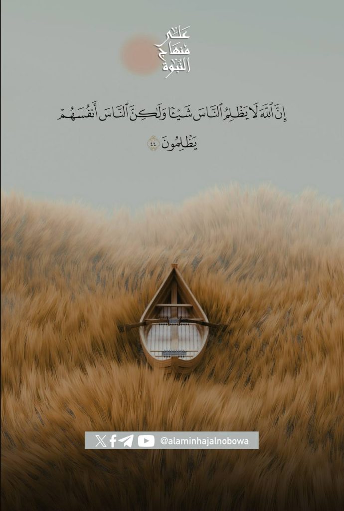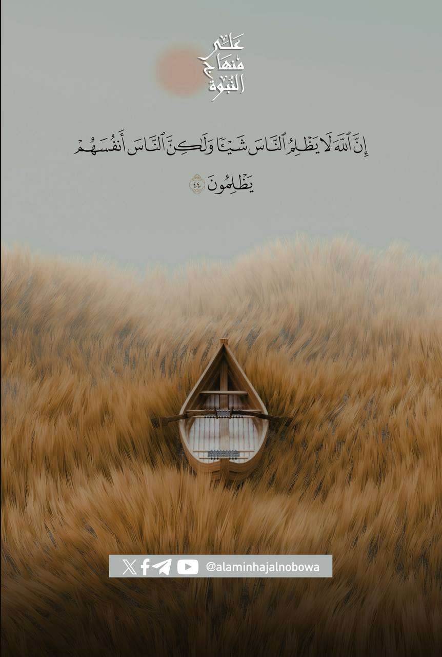 ﴿ إِنَّ اللَّهَ لَا يَظْلِمُ النَّاسَ شَيْئًا وَلَٰكِنَّ النَّاسَ أَنفُسَهُمْ يَظْلِمُونَ﴾ [ يونس: 44]
