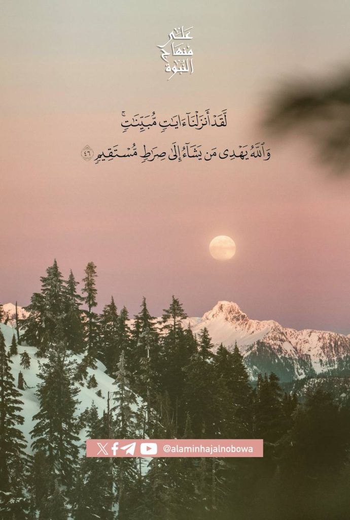 ﴿ لَّقَدْ أَنزَلْنَا آيَاتٍ مُّبَيِّنَاتٍ ۚ وَاللَّهُ يَهْدِي مَن يَشَاءُ إِلَىٰ صِرَاطٍ مُّسْتَقِيمٍ﴾ [ النور: 46]
