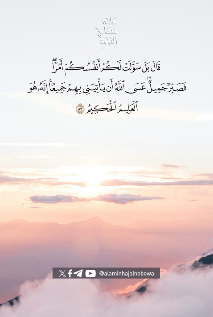﴿ ۚقَالَ بَلْ سَوَّلَتْ لَكُمْ أَنفُسُكُمْ أَمْرًا ۖ فَصَبْرٌ جَمِيلٌ ۖ وَاللَّهُ الْمُسْتَعَانُ عَلَىٰ مَا تَصِفُونَ﴾ [ يوسف: 18]