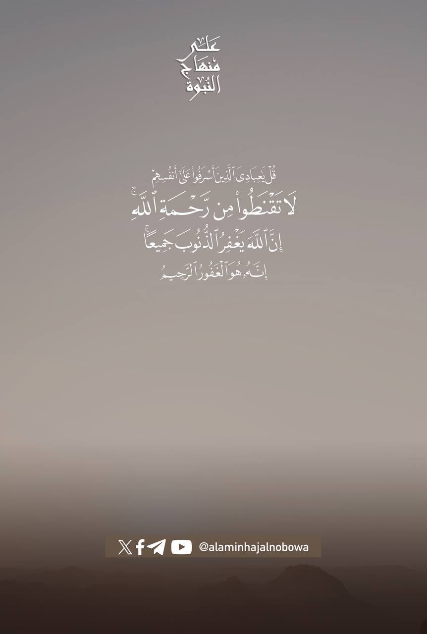 قُلْ يَا عِبَادِيَ الَّذِينَ أَسْرَفُوا عَلَىٰ أَنفُسِهِمْ لَا تَقْنَطُوا مِن رَّحْمَةِ اللَّهِ