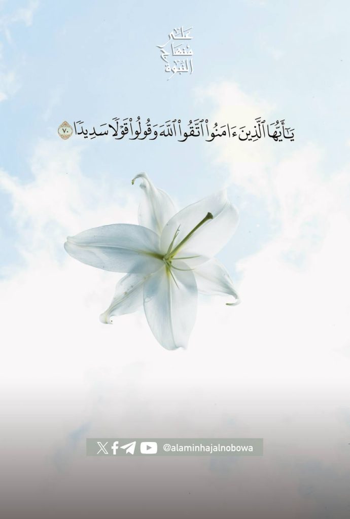﴿يَا أَيُّهَا الَّذِينَ آمَنُوا اتَّقُوا اللَّهَ وَقُولُوا قَوْلًا سَدِيدًا﴾ ( الأحزاب 70)