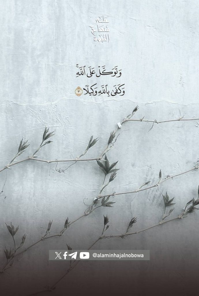 ﴿وَتَوَكَّلْ عَلَى اللَّهِ ۚ وَكَفَىٰ بِاللَّهِ وَكِيلًا﴾ [الأحزاب 3]