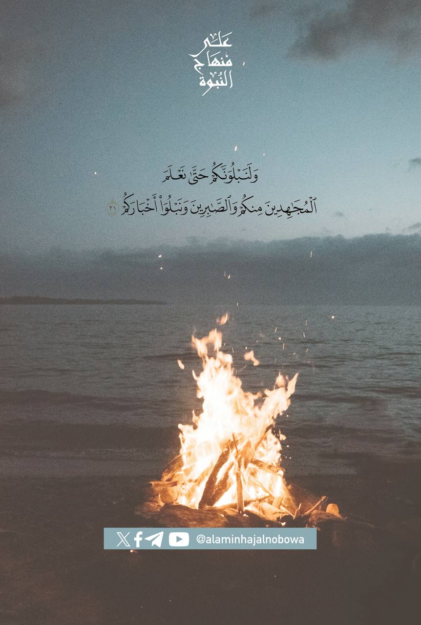 ﴿وَلَنَبْلُوَنَّكُمْ حَتَّىٰ نَعْلَمَ الْمُجَاهِدِينَ مِنكُمْ وَالصَّابِرِينَ وَنَبْلُوَ أَخْبَارَكُمْ ﴾ [محمد 31]
