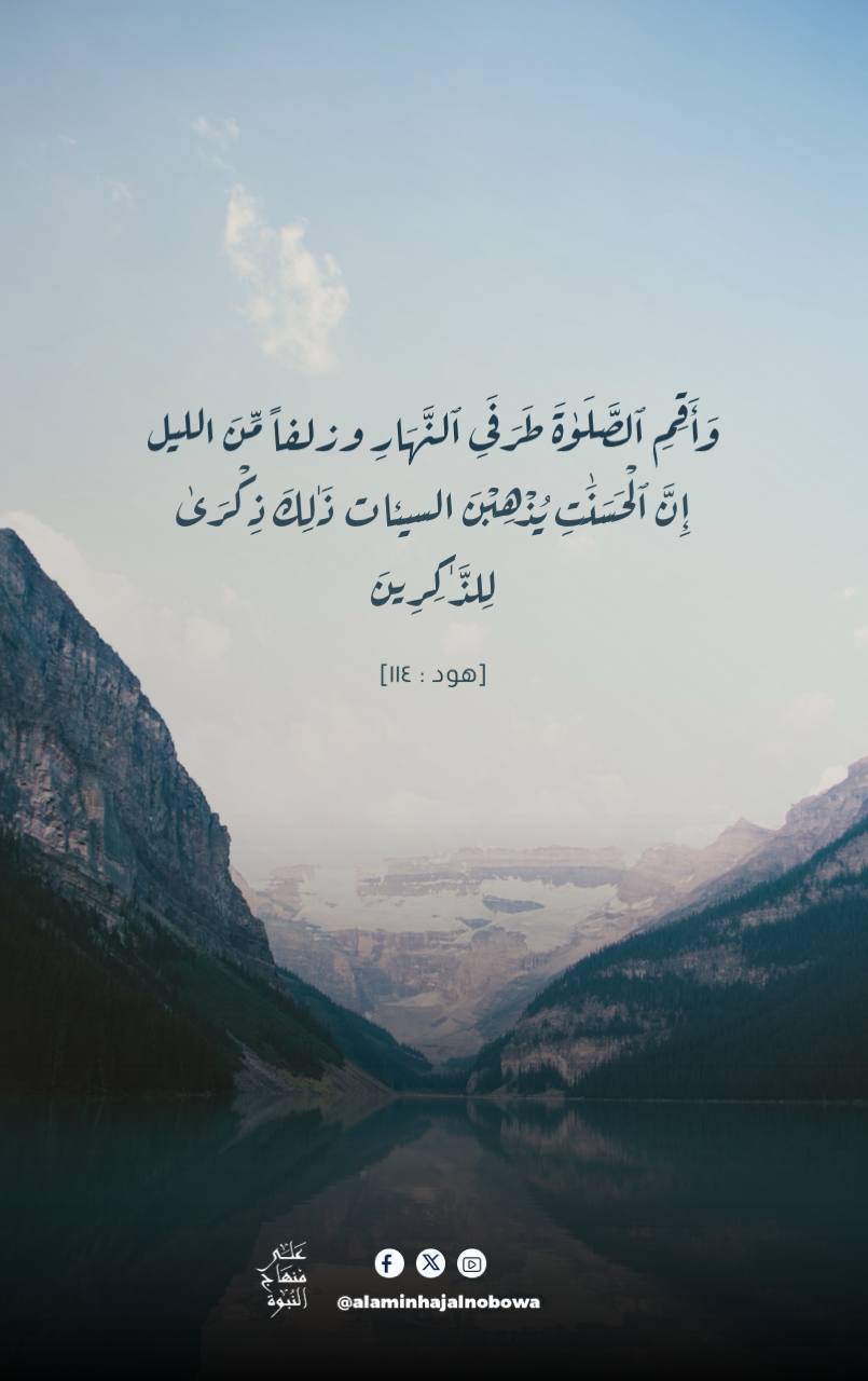 ﴿ وَأَقِمِ الصَّلَاةَ طَرَفَيِ النَّهَارِ وَزُلَفًا مِّنَ اللَّيْلِ ۚ إِنَّ الْحَسَنَاتِ يُذْهِبْنَ السَّيِّئَاتِ ۚ ذَٰلِكَ ذِكْرَىٰ لِلذَّاكِرِينَ﴾ [ هود: 114]