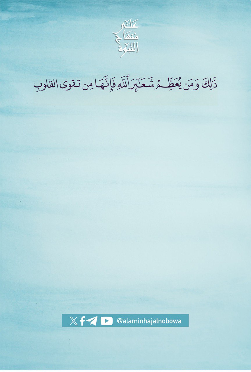 ﴿ ذَٰلِكَ وَمَن يُعَظِّمْ شَعَائِرَ اللَّهِ فَإِنَّهَا مِن تَقْوَى الْقُلُوبِ﴾ [ الحج: 32]