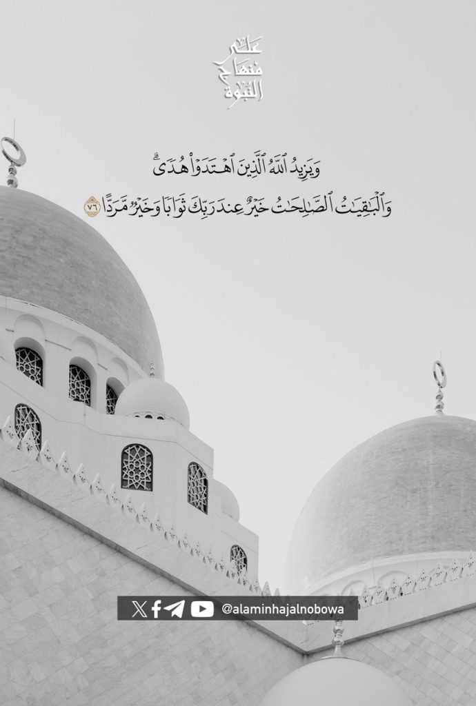 ﴿ وَيَزِيدُ اللَّهُ الَّذِينَ اهْتَدَوْا هُدًى ۗ وَالْبَاقِيَاتُ الصَّالِحَاتُ خَيْرٌ عِندَ رَبِّكَ ثَوَابًا وَخَيْرٌ مَّرَدًّا﴾ [ مريم: 76]