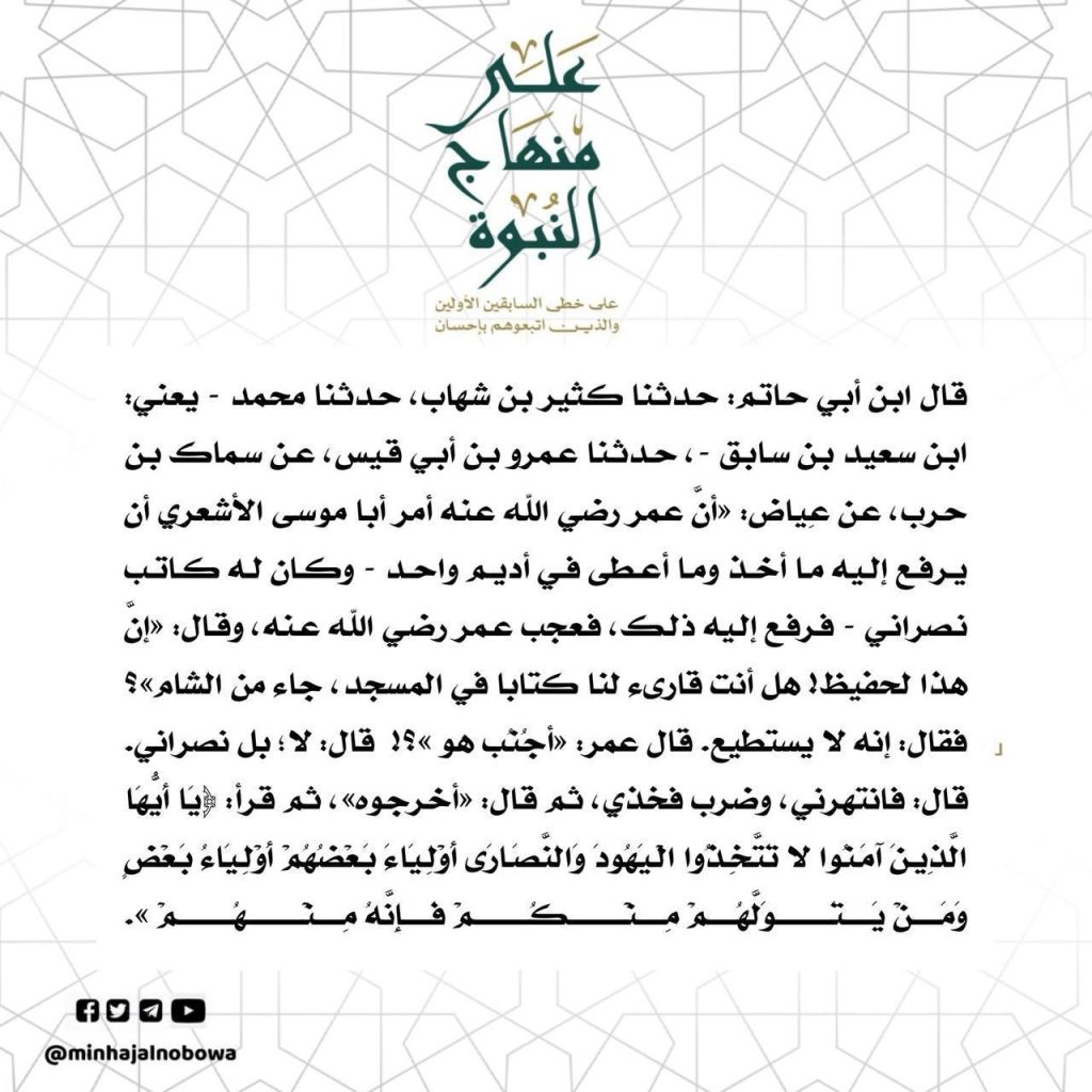 قال ابن أبي حاتم: حدثنا كثير بن شهاب، حدثنا محمد - يعني: ابن سعيد بن سابق -، حدثنا عمرو بن أبي قيس، عن سماك بن حرب، عن عياض: «أنَّ عمر رضي الله عنه…