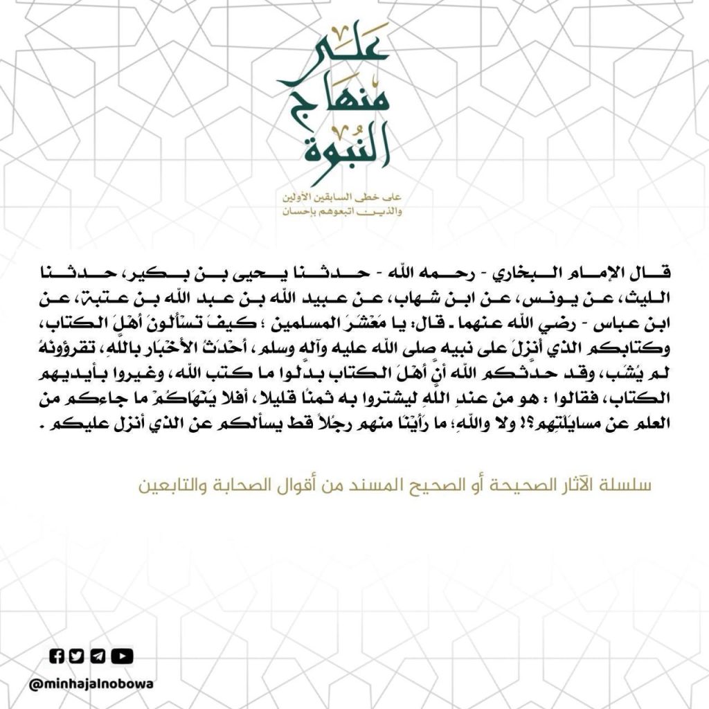 عن الإمام التقي الورع عبد الله بن المبارك - رحمه الله تعالى أنه قال: «الإسنادُ عندي من الدين، ولولا الاسناد لقال من شاء ما شاء». سلسلة الآثار الصحيحة أو الصحيح المسند من أقوال…