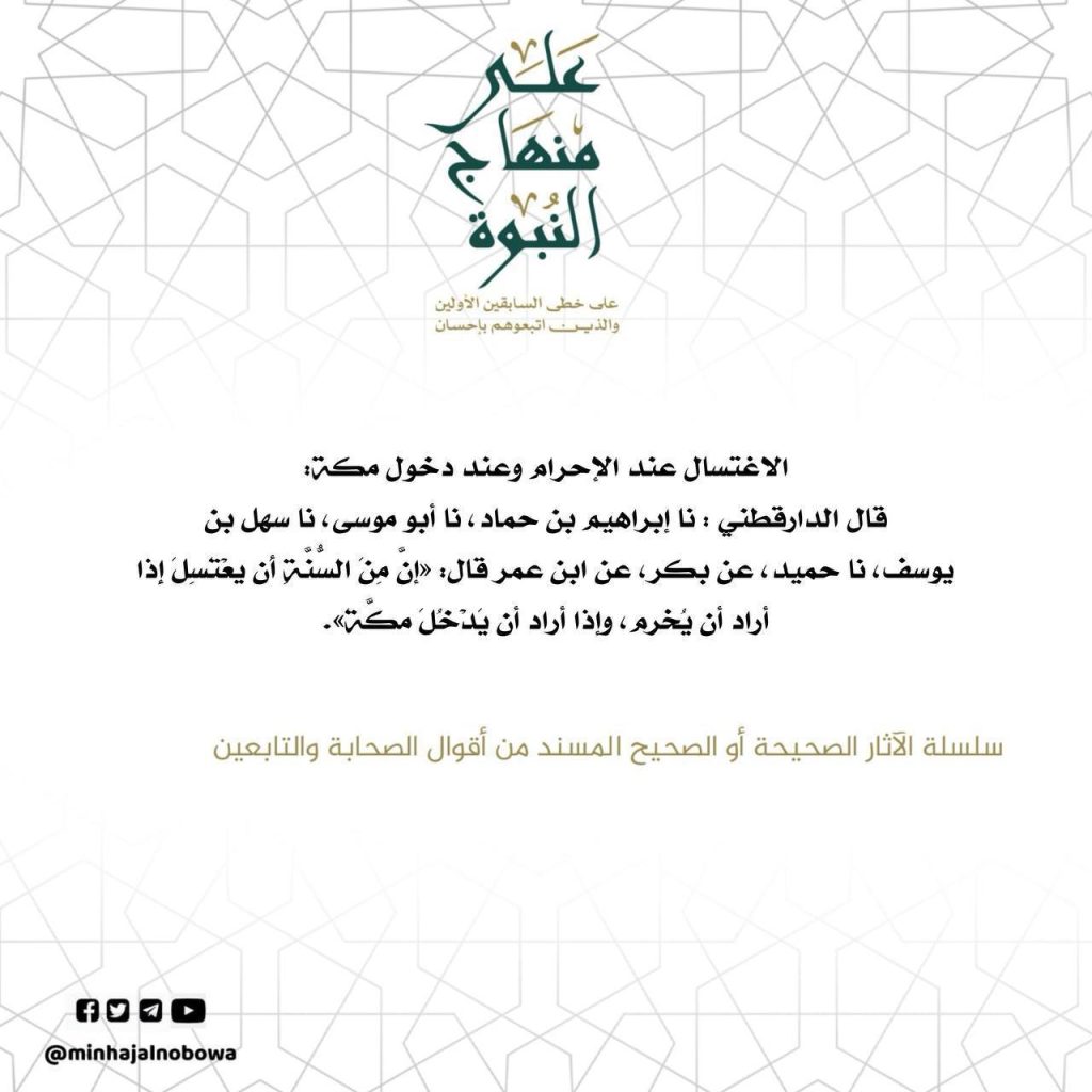 قال الدارقطني : نا إبراهيم بن حماد، نا أبو موسى، نا سهل بن يوسف، نا حميد، عن بكر، عن ابن عمر قال: «إنَّ مِنَ السُّنَّة أن يغتسل إذا أراد أن يُحرم، وإذا أراد…
