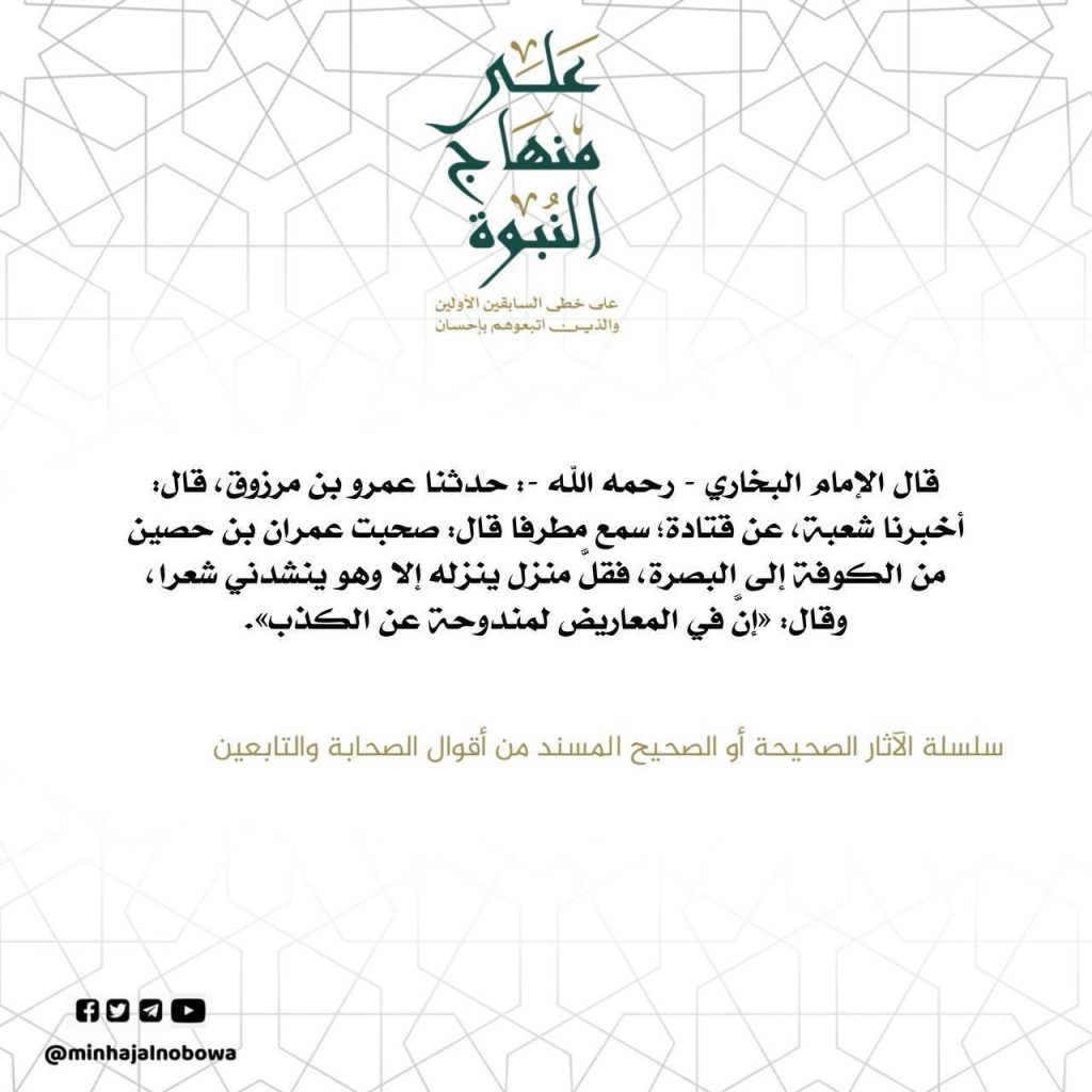 قال الامام البخاري - رحمه الله -: حدثنا عمرو بن مرزوق، قال: أخبرنا شعبة، عن قتادة؛ سمع مطرفا قال: صحبت عمران بن حصين من الكوفة إلى البصرة، فَقَلَّ منزل ينزله إلا وهو ينشدني…