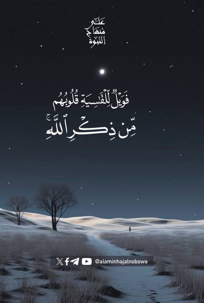 ﴿ أَفَمَن شَرَحَ اللَّهُ صَدْرَهُ لِلْإِسْلَامِ فَهُوَ عَلَىٰ نُورٍ مِّن رَّبِّهِ ۚ فَوَيْلٌ لِّلْقَاسِيَةِ قُلُوبُهُم مِّن ذِكْرِ اللَّهِ ۚ أُولَٰئِكَ فِي ضَلَالٍ مُّبِينٍ﴾ [ الزمر: 22]