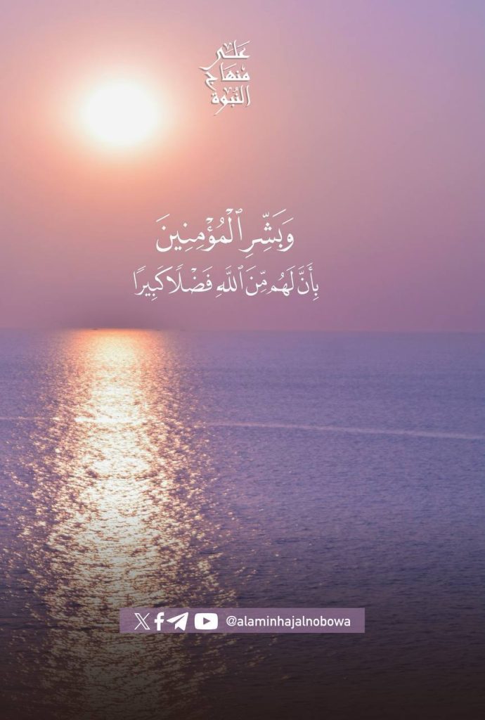 ﴿ وَبَشِّرِ الْمُؤْمِنِينَ بِأَنَّ لَهُم مِّنَ اللَّهِ فَضْلًا كَبِيرًا﴾ [ الأحزاب: 47]