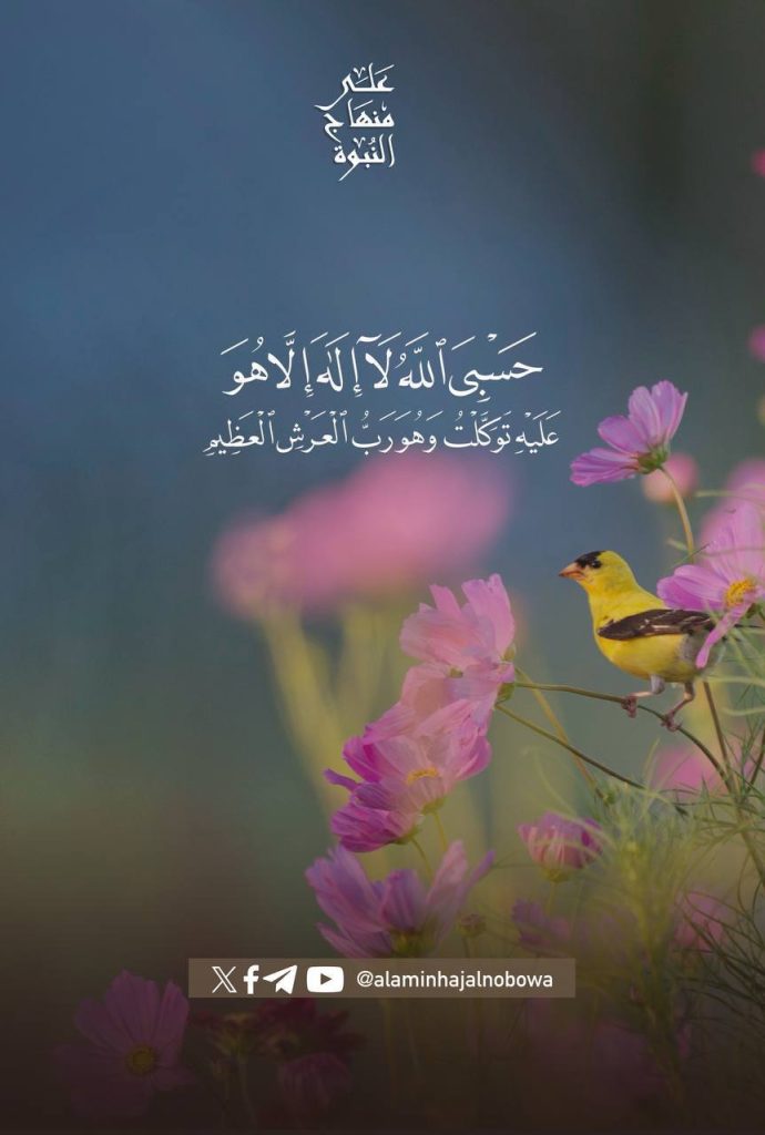 ﴿ فَإِن تَوَلَّوْا فَقُلْ حَسْبِيَ اللَّهُ لَا إِلَٰهَ إِلَّا هُوَ ۖ عَلَيْهِ تَوَكَّلْتُ ۖ وَهُوَ رَبُّ الْعَرْشِ الْعَظِيمِ﴾ [ التوبة: 129]