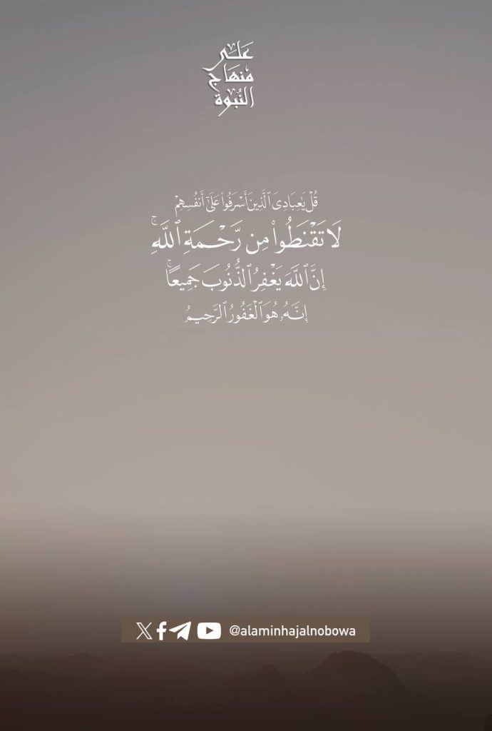 قُلْ يَا عِبَادِيَ الَّذِينَ أَسْرَفُوا عَلَىٰ أَنفُسِهِمْ لَا تَقْنَطُوا مِن رَّحْمَةِ اللَّهِ
